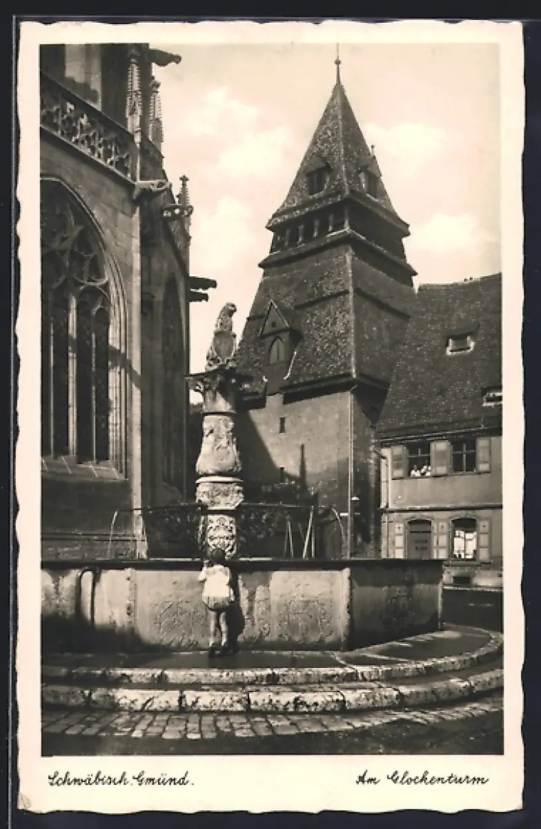 AK Schwäbisch. Gmünd, Brunnen am Glockenturm