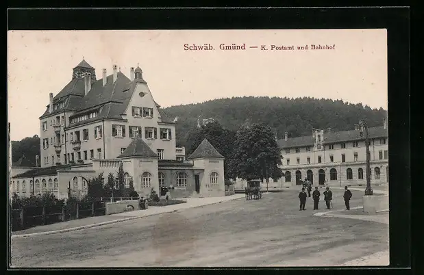 AK Schwäbisch Gmünd, K. Postamt und Bahnhof