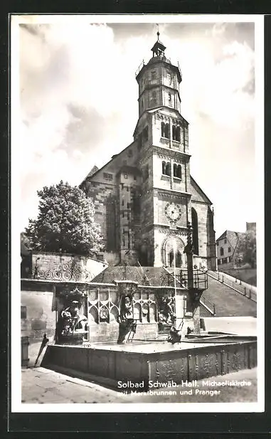 AK Schwäbisch Hall, Michaeliskirche mit Marktbrunnen und Pranger