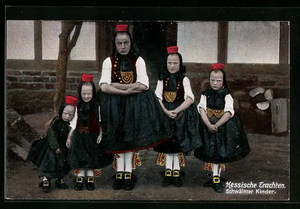 AK Schwälmer Kinder, hessische Tracht