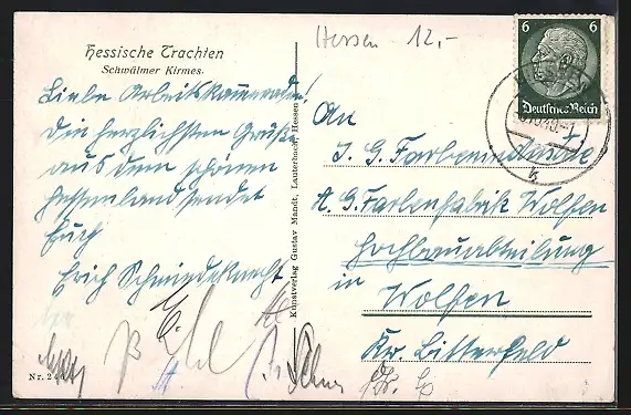 AK Schwälmer Kirmes, Paare in hessischen Trachten