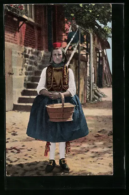 AK Schwälmer Mädchen in Tracht mit Korb