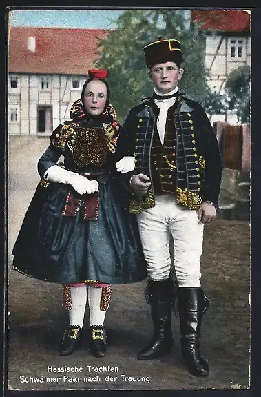 AK Schwälmer Paar in hessischer Tracht nach der Trauung