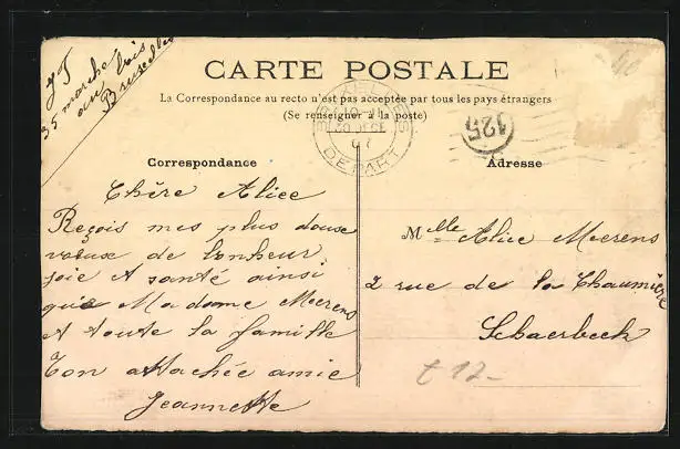 alte Ansichtskarte, gelaufen 1907, Briefmarke entfernt, rückseitig Oberflächenschaden, guter Zustand