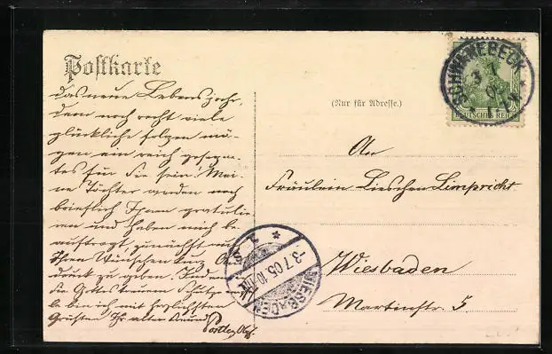 alte Ansichtskarte, gelaufen 1905, Eckknick li. oben, Stempelspur, guter Zustand
