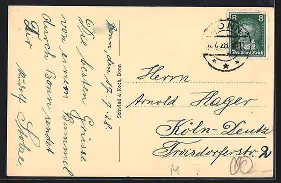 alte Ansichtskarte, gelaufen 1928, Stempelspur, guter Zustand