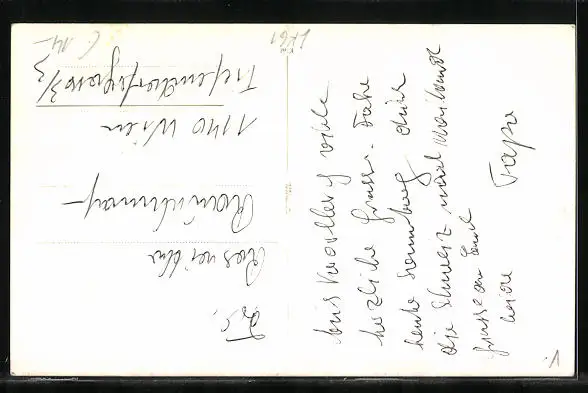 Personenbezogene Daten auf der Rückseite der Karte wurden durch blauen Textmarker unkenntlich gemacht. Die blauen Stellen sind auf die Vorderseite durchgeweicht und wirken sich negativ auf das Postkartenfoto aus