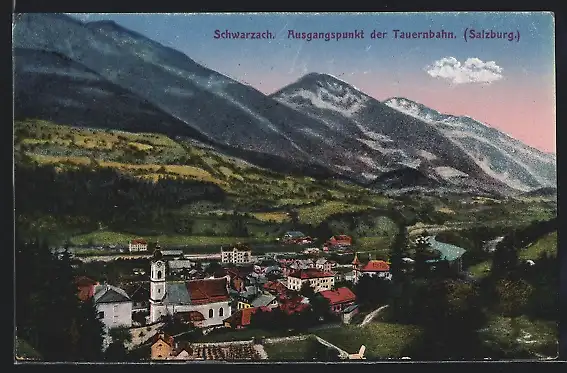 AK Schwarzach /Tauernbahn, Ortspartie mit Kirche