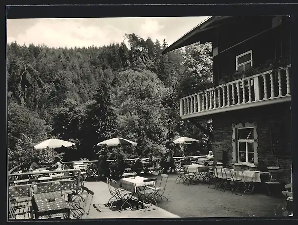 AK Schwarzburg i. Thür., HO-Gaststätte Scheizerhaus, Terrasse