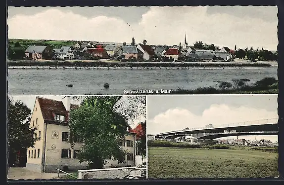 AK Schwarzenau a. Main, Totalansicht, Mainbrücke