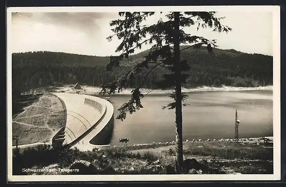 AK Schwarzenbach, Talsperre mit Boot auf dem Wasser
