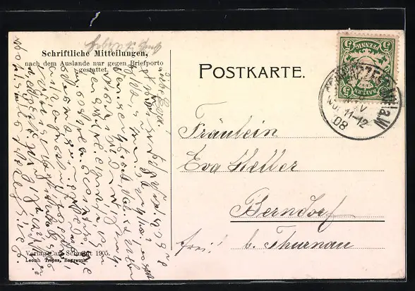 alte Ansichtskarte, gelaufen 1908, Bugspur unten re., guter Zustand