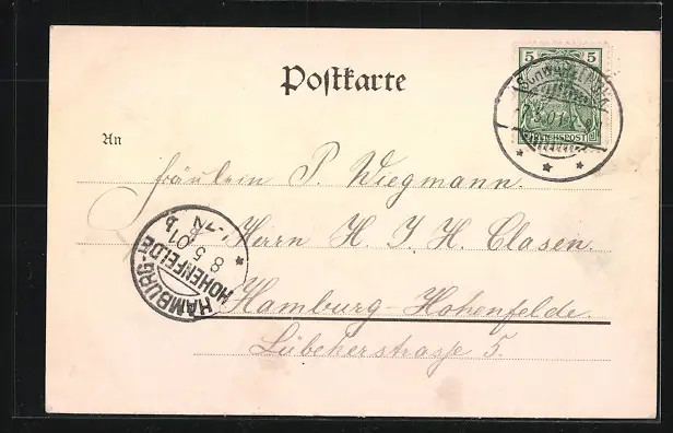 alte Ansichtskarte, gelaufen 1901, Stempelspur, guter Zustand