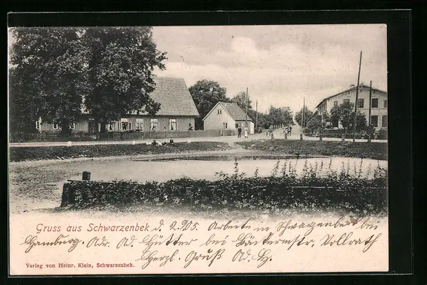 AK Schwarzenbek, Strassenpartie am Teich