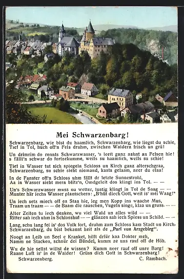 AK Schwarzenberg / Erzgeb., Ortsansicht, Mundart-Gedicht