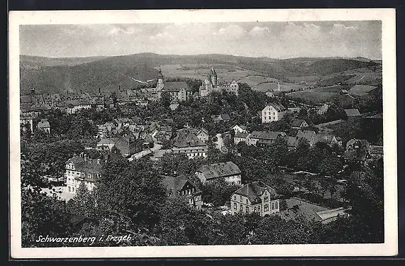 AK Schwarzenberg i. Erzgeb., Teilansicht mit Kirche