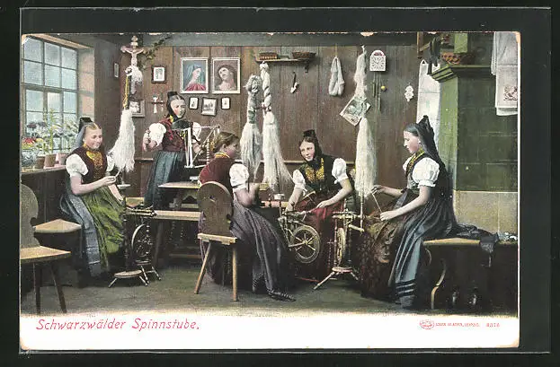 AK Schwarzwälder Tracht, Frauen in Schwarzwälder Spinnstube