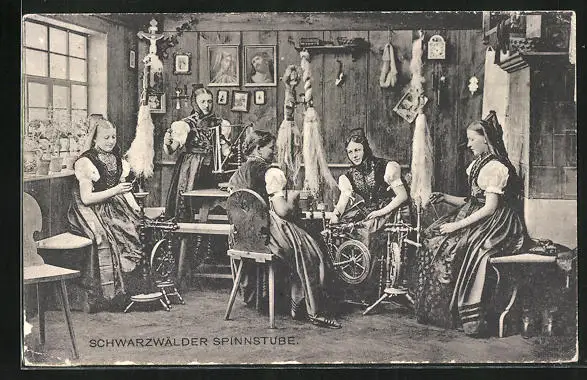 AK Schwarzwälder Tracht, Frauen in der Schwarzwälder Spinnstube