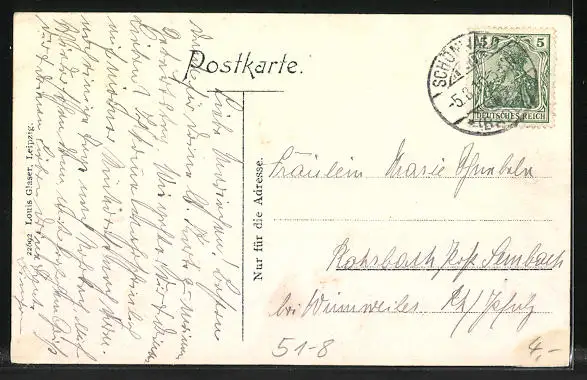 alte Ansichtskarte, gelaufen 1910, Eckknick li. unten, rückseitig Klebe- und Papierreste, guter Zustand