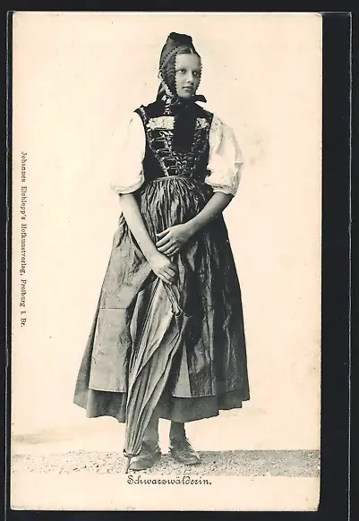 AK Schwarzwälderin in Tracht mit einem Schirm