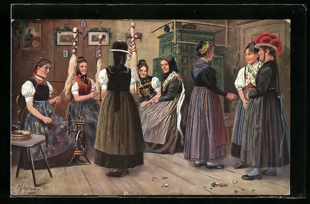 AK Schwarzwälderinnen in der Spinnstube in Trachten