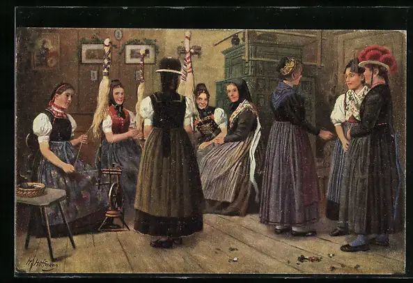 AK Schwarzwälderinnen in der Spinnstube in Trachten