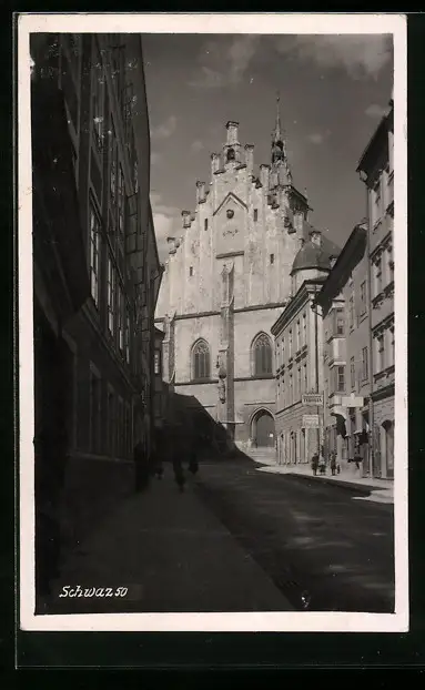 AK Schwaz, Strassenpartie mit Kirche