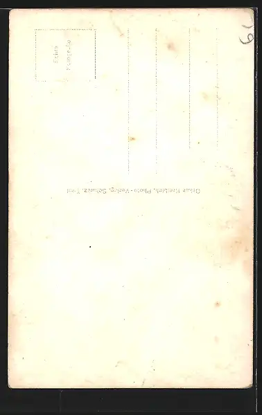 Personenbezogene Daten auf der Rückseite der Karte wurden durch blauen Textmarker unkenntlich gemacht. Die blauen Stellen sind auf die Vorderseite durchgeweicht und wirken sich negativ auf das Postkartenfoto aus