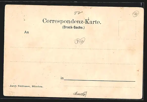 Personenbezogene Daten auf der Rückseite der Karte wurden durch blauen Textmarker unkenntlich gemacht. Die blauen Stellen sind auf die Vorderseite durchgeweicht und wirken sich negativ auf das Postkartenfoto aus
