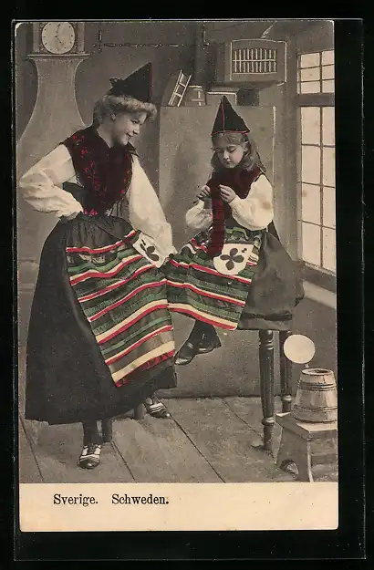 AK Schweden, Mutter zeigt ihrer Tochter Stricken