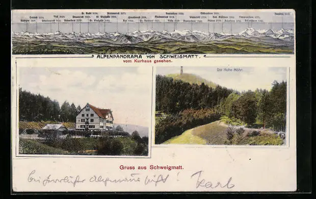 AK Schweigmatt, Kurhaus, Hohe Möhr, Alpenpanorama