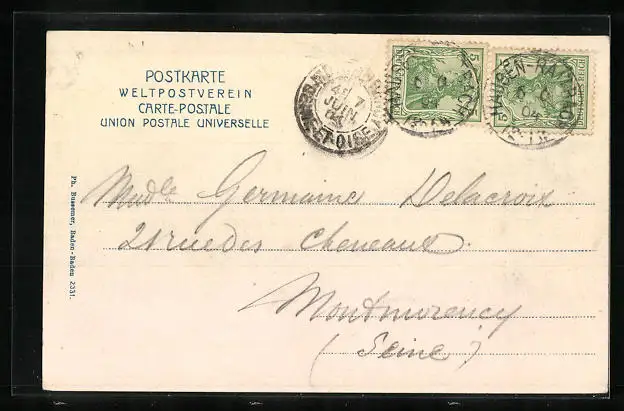 alte Ansichtskarte, gelaufen 1904, guter Zustand