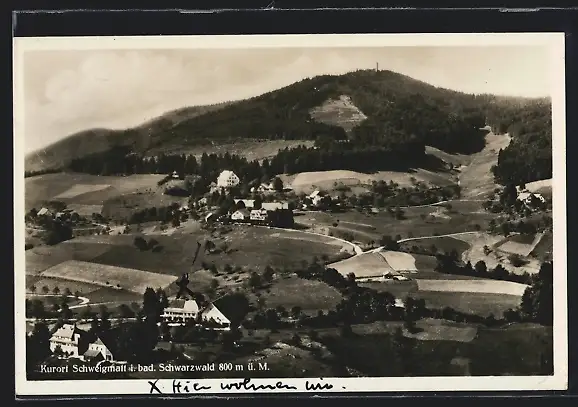 AK Schweigmatt i. bad. Schwarzwald, Totalansicht von einem Berg aus