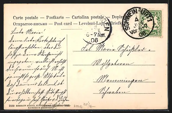 alte Ansichtskarte, gelaufen 1906, Stempelspur, guter Zustand