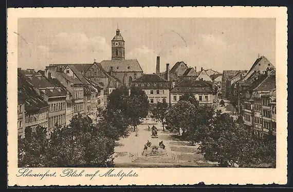 Personenbezogene Daten auf der Rückseite der Karte wurden durch blauen Textmarker unkenntlich gemacht. Die blauen Stellen sind auf die Vorderseite durchgeweicht und wirken sich negativ auf das Postkartenfoto aus