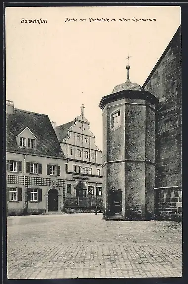 AK Schweinfurt, Kirchplatzpartie mit altem Gymnasium