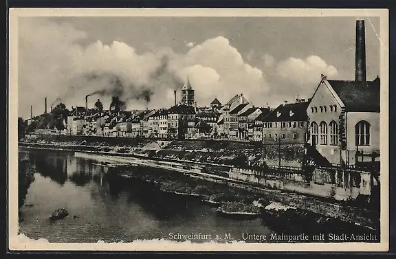 AK Schweinfurt / Main, Untere Mainpartie mit Stadtansicht