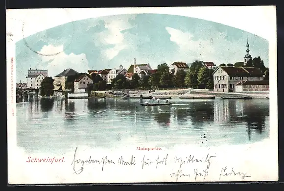 AK Schweinfurt, Mainpartie mit Blick zur Stadt