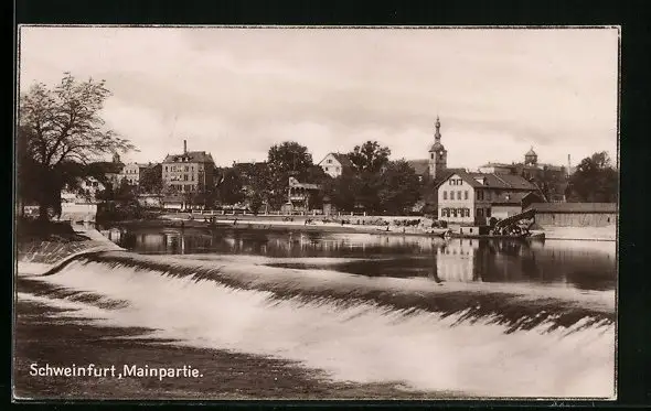 AK Schweinfurt, Mainpartie mit Stadtblick