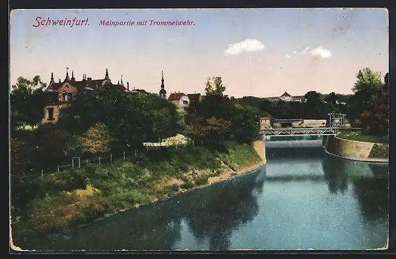 AK Schweinfurt, Mainpartie mit Trommelwehr