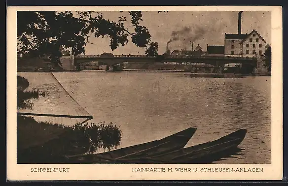 AK Schweinfurt, Mainpartie mit Wehr- und Schleusen-Anlagen
