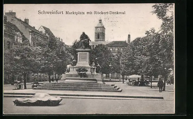 AK Schweinfurt, Marktplatz mit Rückert-Denkmal