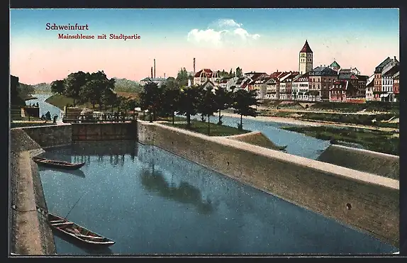 AK Schweinfurt, Ortsansicht mit Mainschleuse