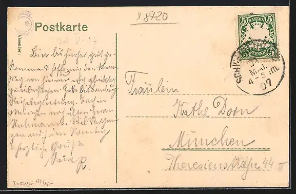 alte Ansichtskarte, gelaufen 1907, guter Zustand