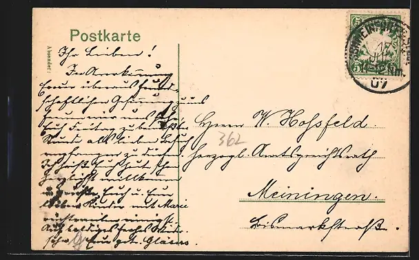 alte Ansichtskarte, gelaufen 1907, Stempelspur, guter Zustand