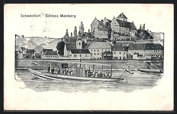 AK Schweinfurt, Schloss Mainberg und Dampfer Prinz Ludwig