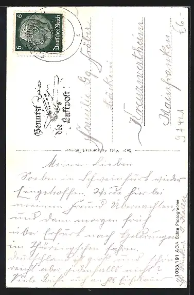 alte Ansichtskarte, gelaufen 1940, Einriss oben mittig, guter Zustand