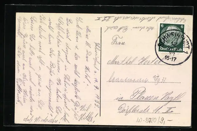 alte Ansichtskarte, gelaufen 1933, Eckknick oben li., guter Zustand