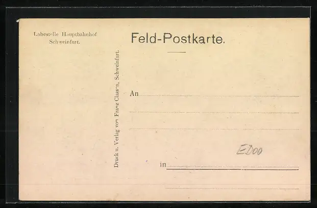 Personenbezogene Daten auf der Rückseite der Karte wurden durch blauen Textmarker unkenntlich gemacht. Die blauen Stellen sind auf die Vorderseite durchgeweicht und wirken sich negativ auf das Postkartenfoto aus