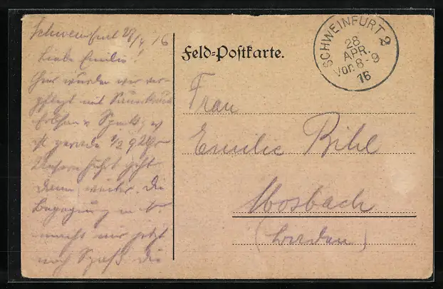 alte Ansichtskarte, gelaufen 1916, Bugspur Mitte re., kl. Eckknicke li., Druckspuren oben, guter Zustand